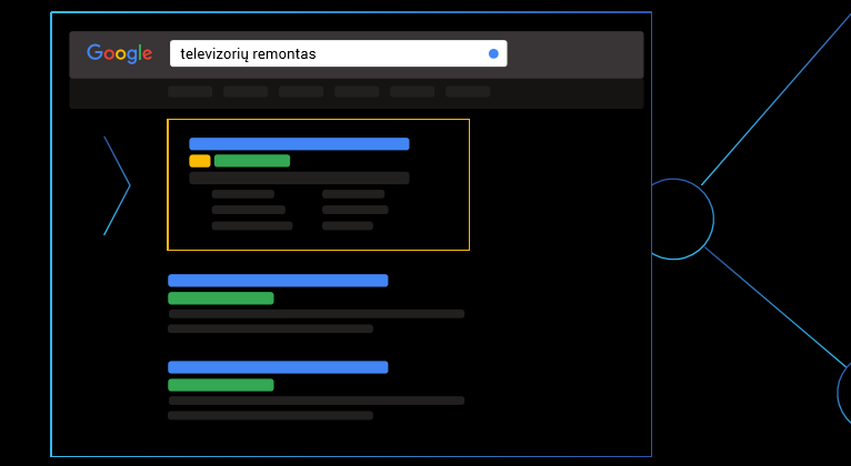 Google Ads sistema parodo jūsų interneto reklamą (skelbimus), kai vartotojas ieško Google informacijos apie jį dominančius produktus arba paslaugas, įvesdamas jūsų atsirinktus arba glaudžiai susijusius žodžius.